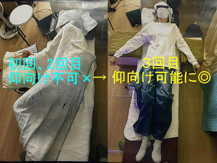 13年間横向きしかできなかった患者さん、(やはり80代女性)が確か4回目で、