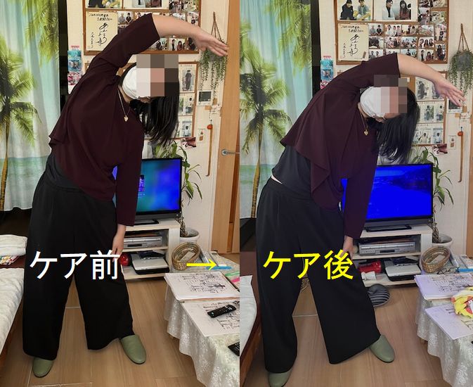 〇ケア後→身体が緩み、横伸ばしも楽になった(^^)/