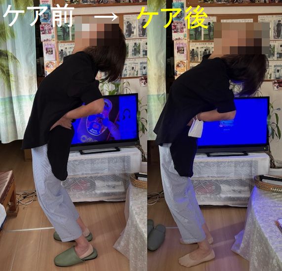 xケア前→首肩のコリ,腰痛で後ろ反りが辛かった(>_<)