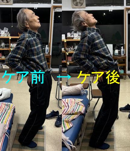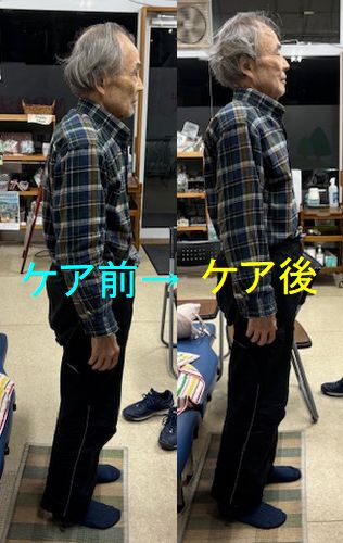 〇ケア後→首肩のコリ腰痛が取れて楽になる。後ろ反りも楽になる(^^)/