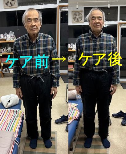 ケアの効果で、痛みが解消し、動きも良くなり、姿勢そのものが見違えるように改善しました。